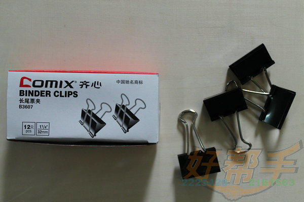 办公文具->*针钉夹->长尾夹>>>   齐心长尾夹黑色B3607/32MM/12个