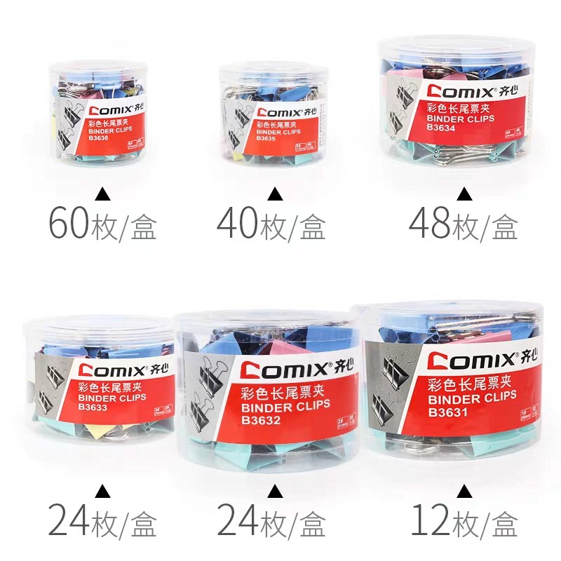办公文具->*针钉夹->长尾夹>>>   齐心彩色长尾夹B3636/15MM/150盒*60个/筒/件/417号