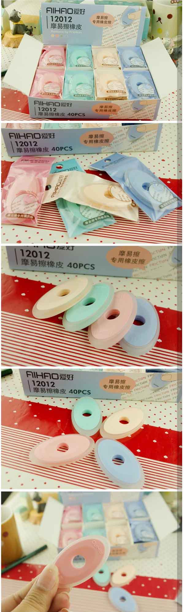 备注:此款橡皮擦是爱好摩易擦可擦笔专用橡皮,不能擦除铅笔,普通中性笔,圆珠笔等写出的字迹的哈!橡皮呈圆形装,可爱小巧版本的!四色可选!3岁以下儿童禁止使用!