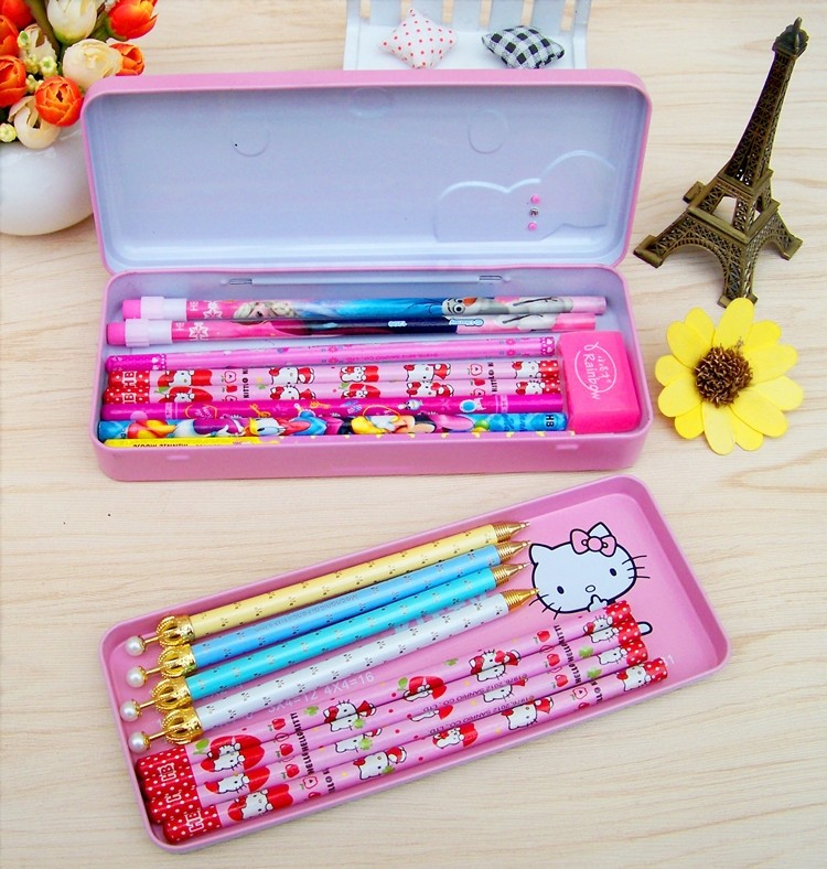 学生用品->笔盒/笔袋/书夹/书套/书立->笔盒>>>   KT9214双层铁笔盒/12个