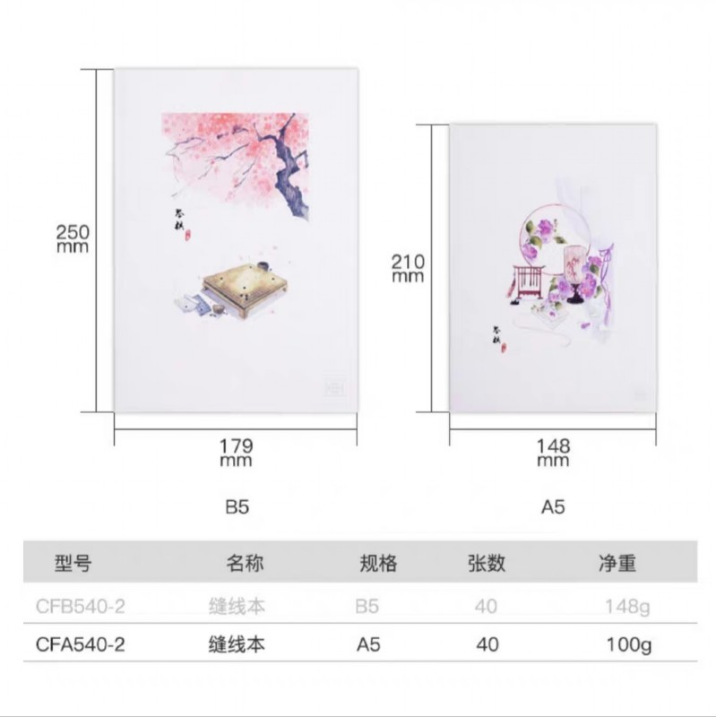 商品名称 齐心B5琴棋书画系列缝线本/CFB540-2/12本/扎