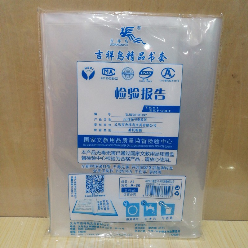 学生用品->笔盒/笔袋/书夹/书套/书立->书套>>>   吉祥鸟A4环保书套/A-30/60包*10个/包