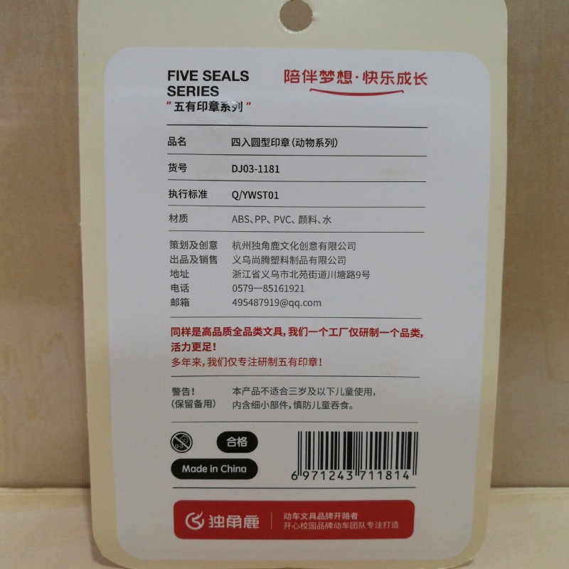 商品名称 独角鹿4个装五有印章/动物系列/18排/盒