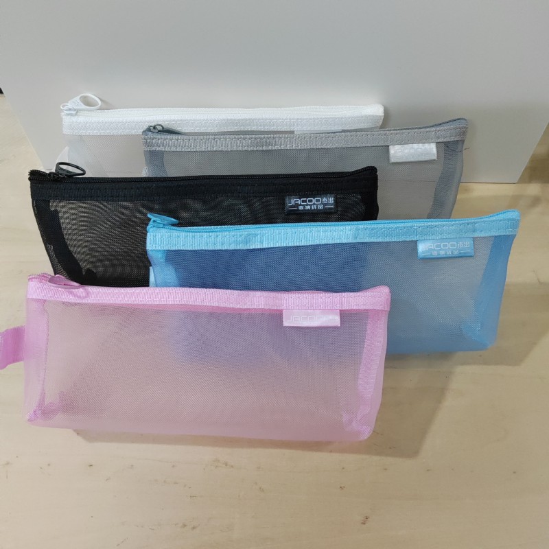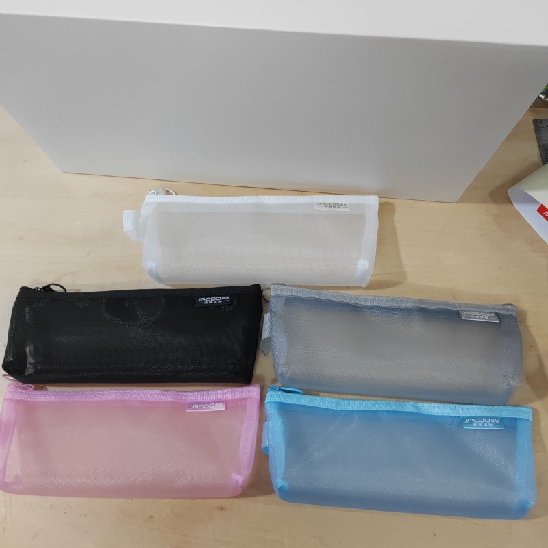 学生用品->笔盒/笔袋/书夹/书套/书立->笔袋>>>   杰出JC5202梯形尼龙纱网笔袋/56个/盒