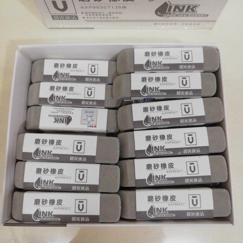 学生用品->*胶擦/修正类/握笔器->胶擦>>>   晨光全磨砂橡皮擦AXP963C7/36块/合