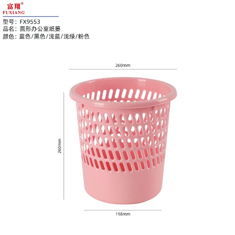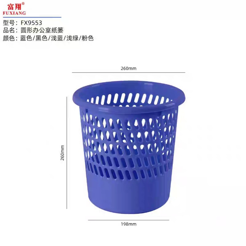 文件用品->*胶文件夹->短单夹>>>   富翔FX9553圆形办公纸篓/80个/件