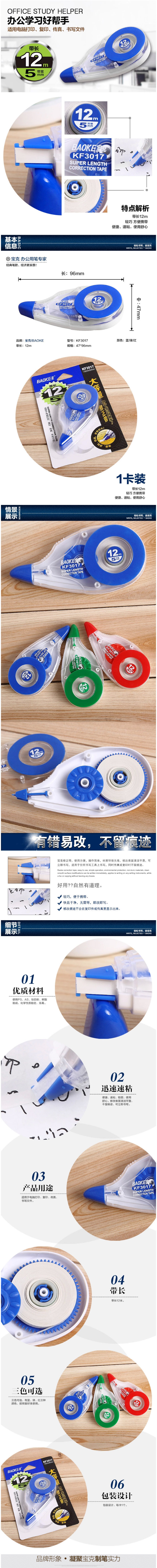 学生用品->*胶擦/修正类/握笔器->修正带>>>   宝克修正带KF3017/5MM*12M/24个