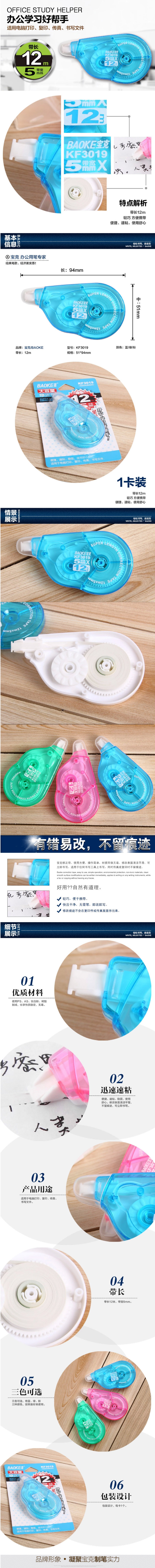 学生用品->*胶擦/修正类/握笔器->修正带>>>   宝克修正带KF3019/5MM*12M/24个