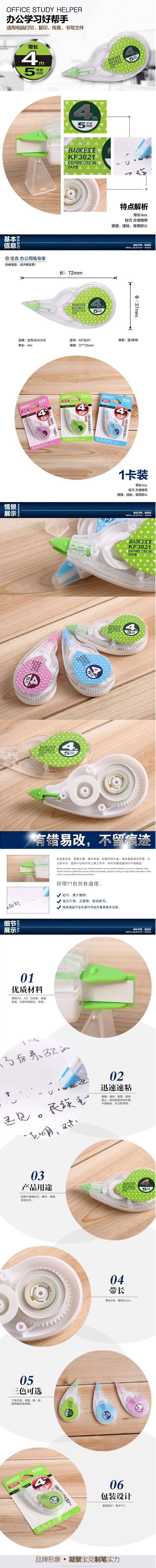 学生用品->*胶擦/修正类/握笔器->修正带>>>   宝克修正带KF3021/5MM*4M/48个