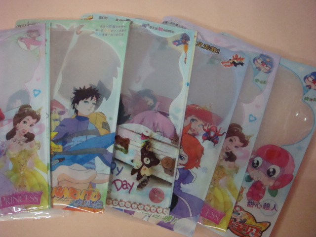 【名称】:中号25K 卡通活动书套 【型号】:H215【尺寸】:中号 25K 实测约21.2*15.5厘米(手工测量 有小误差难免)【材质】:PVC 塑料,流行卡通图案混装发货,